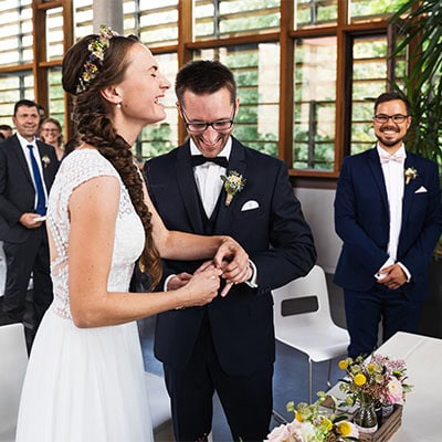 Wir werden dich auf jeden Fall weiterempfehlen, wenn mal jemand aus unserem Freundeskreis einen Hochzeitsfotografen sucht. ;)“